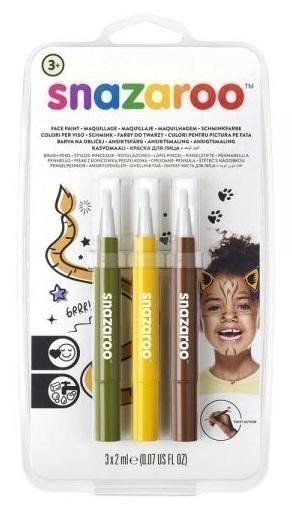 pro vytváření obličejů tygrů, lvů a gepardů připraveno k okamžitému použit í - není potřeba žádné další vybavení ani voda se štětcovým aplikátorem vhodným pro malování obrysů, malých vzorů, ale i pokrytí větších ploch s víčkem zabraňujícím vysychání barvy díky kompaktnímu balení vhodné i na cesty