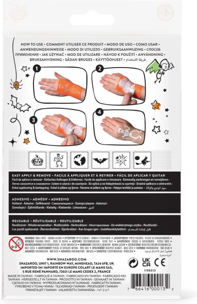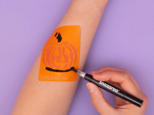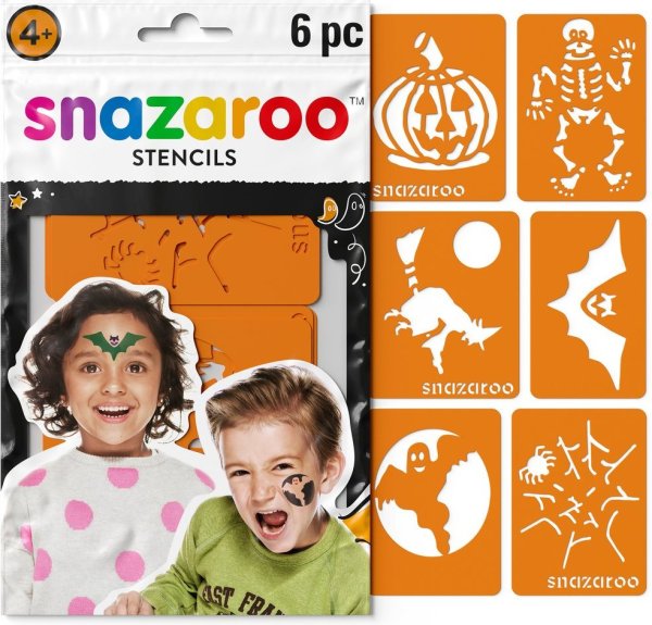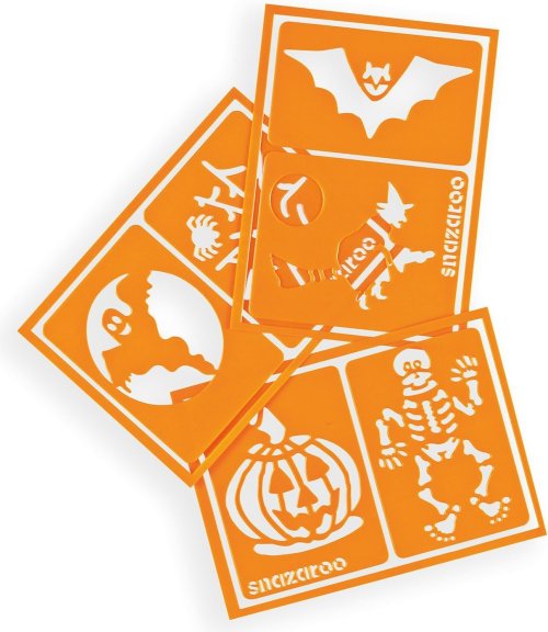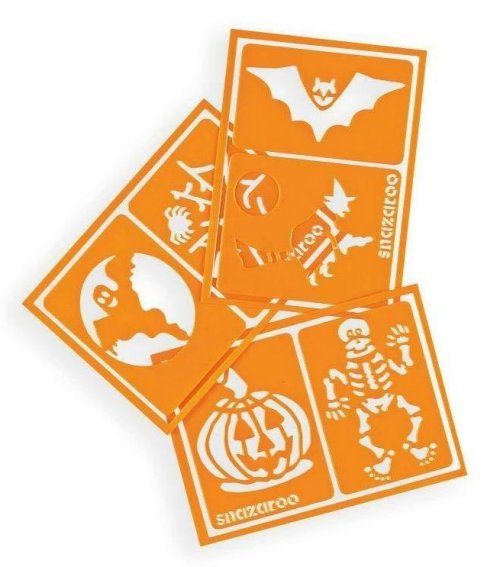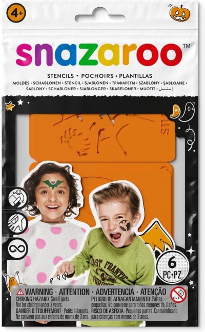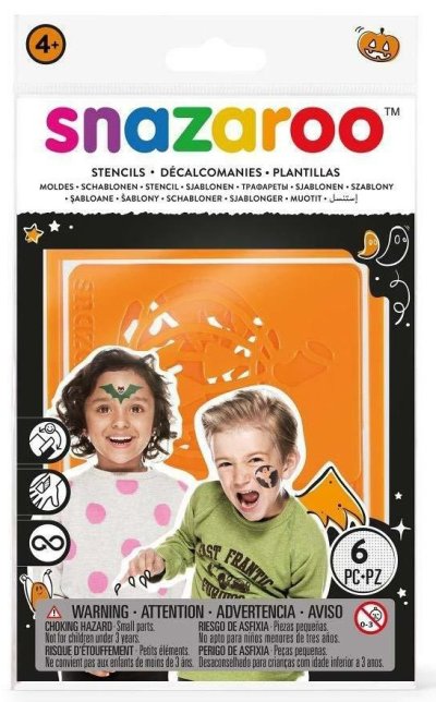 tematicky zaměřené na Halloween skvělý doplněk pro malování na obličej a tělo samolepicí podklad udrží šablonu na místě pružný materiál se snadno přizpůsobí křivkám obličeje nebo rukou opakovaně použitelné a omyvatelné ideální pro použití s barvami na obličej a tělo Snazaroo