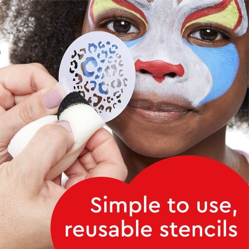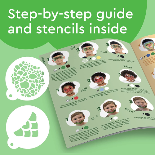 ideální na oslavy, karnevaly, halloween nebo pálení čarodějnic jednoduchá aplikace - štětcem nebo houbičkou vhodné pro obličej i tělo dlouhotrvající, jasné a syté barvy k namalování nejméně 40 plnobarevných obličejů bezpečné a netoxické, vhodné i pro citlivou kůži lehce odstranitelné - omyvatelné vodou a mýdlem obsahuje 8 barev včetně zelené metalické barvy , houbičky, štětec, šablony a obrázkový návod