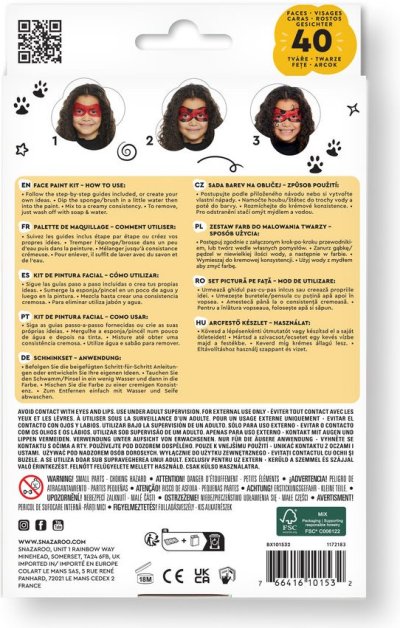ideální na oslavy, karnevaly, halloween nebo pálení čarodějnic jednoduchá aplikace - štětcem nebo houbičkou vhodné pro obličej i tělo dlouhotrvající, jasné a syté barvy k namalování nejméně 40 plnobarevných obličejů bezpečné a netoxické, vhodné i pro citlivou kůži lehce odstranitelné - omyvatelné vodou a mýdlem obsahuje 8 barev, houbičky, štětec, šablony a obrázkový návod
