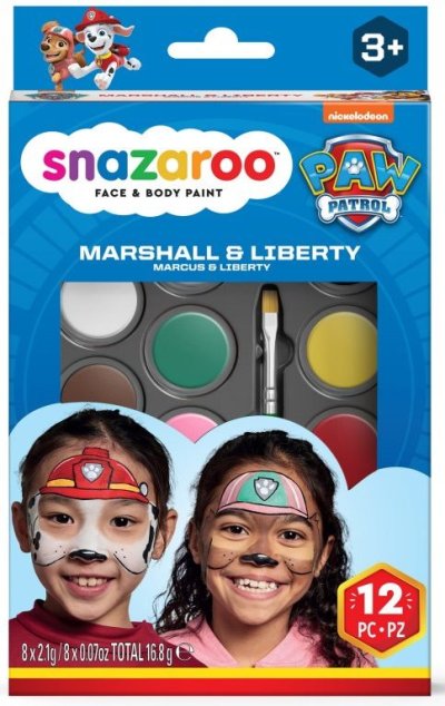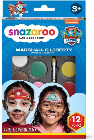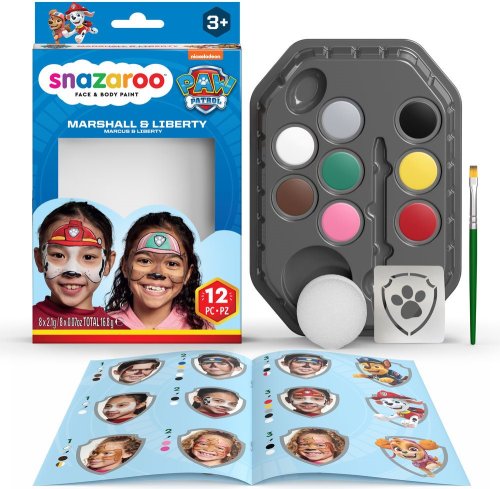 Sada kvalitních barev na obličej a tělo Snazaroo speciálně navržená pro fanoušky Tlapkové patroly .