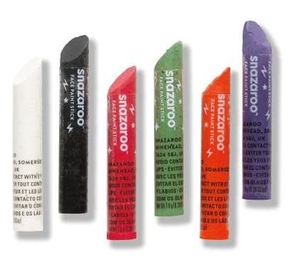 Sada 6 barevných tyčinek ve tvaru tužek pro malování na obličej a tělo Snazaroo .