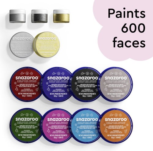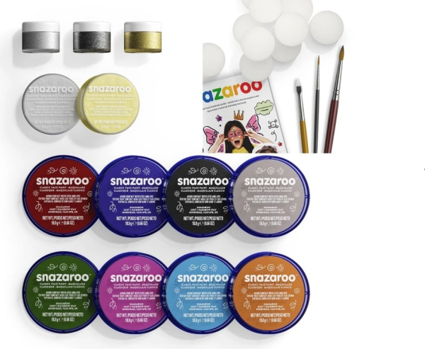 Velká sada kvalitních barev na obličej a tělo Snazaroo určená pro pokročilé malíře. Obsahuje vše, co potřebujete k malování jednoho úsměvu za druhým.