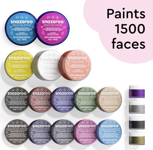Velká sada kvalitních barev na obličej a tělo Snazaroo pro profesionály pro namalování až 1500 obličejů.