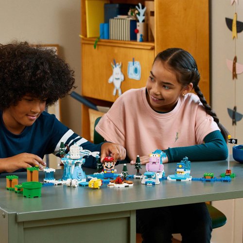 Děti mohou svůj svět LEGO® Super Mario™ obohatit o vzrušující ledovou úroveň se stavebnicí Sněhové dobrodružství s Fliprusem – rozšiřující set (71417), která nabízí 4 postavy ze hry Super Mario™. Hráči mohou sbírat digitální mince za to, že figurkám LEGO® Mario™, LEGO® Luigi™ nebo LEGO® Peach™ (nejsou součástí balení) pomohou porazit Červeného Koopa Troopu, Freezieho a Flipruse. Také mohou bruslit na „ledě“, zahřát se u „ohně“ a dát skryté ovoce jako dárek malému tučňáčkovi. (Poznámka: Ke hraní je zapotřebí startovací set 71360, 71387 nebo 71403.)