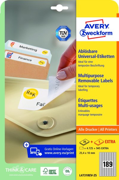 Snímatelné etikety Avery Zweckform dobře drží, zároveň se dají snadno odlepit bez zanechání zbytků lepidla díky technologii Stick&Lift Jsou ideální pro jakékoliv krátkodobé označování např. složek či …