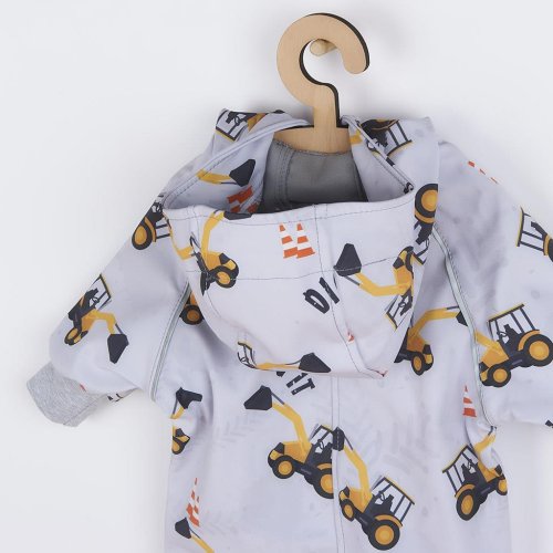 Nápaditý softshellový kojenecký overal New Baby. Overal je celopotištěný dětským vzorem. Overálek je vyroben v České republice z kvalitního materiálu softshell. Materiál je hladký, elestický, měkký a příjemný na dotek. Do určitého stupně je také voděodolný, nenasakuje vodu a je odolný vůči znečištění. Praktické zapínání na zip po celé délce velmi usnadní oblékání a přebalování. Zip je po celé délce podšitý látkou, a tím je zamezeno profukování větru na pokožku miminka. Kombinéza má praktickou kapuci, širší pružné lemy na rukách a nohavičkách a celá vnitřní strana je zateplená krátko střiženým polarem, který zvyšuje komfort nošení a zajišťuje teplo. Na rukávcích jsou našité reflexní paspulky. Softshellový overálek je vhodný jako sportovní oblečení, je odolný větru a zároveň prodyšný. Miminko se bude cítit velmi pohodlně a příjemně.<BR>Charakteristika softsellu:<BR>- tkanina se skládá ze 3 vrstev<BR>- vnější vrstva polyester<BR>- membrána<BR>- vnitřní vrstva, krátko střižený polar<BR>Složení:<BR>- polyester 94%, polyamid 6%<BR>- gramáž 345 g/m2<BR>- vodní sloupec 10 000 mm<BR>- prodyšnost 5000 g/m2/24h<BR>Upozornění:<BR>Během praní nepoužívat aviváž. Charakteristické vlastnosti softshellu by byly znehodnoceny.<BR>Vyrobeno v ČR. <BR>Snažíme se vám výběr správné velikosti co nejvíce usnadnit, proto při fotografiích naleznete velikostní tabulku. Model na fotografii má oblečenou velikost 86.
