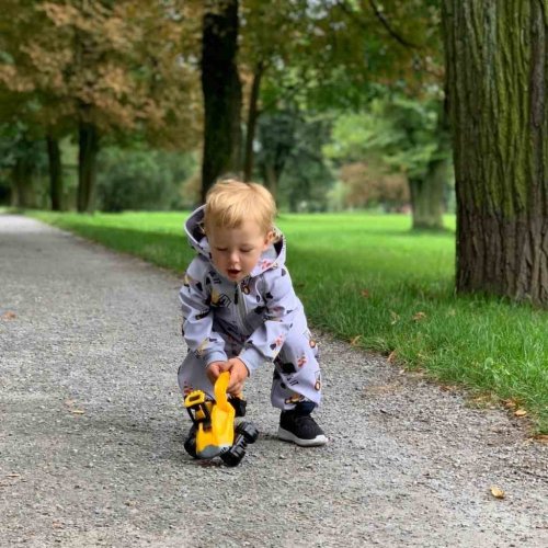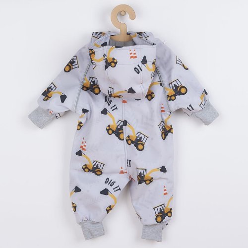 Nápaditý softshellový kojenecký overal New Baby. Overal je celopotištěný dětským vzorem. Overálek je vyroben v České republice z kvalitního materiálu softshell. Materiál je hladký, elestický, měkký a příjemný na dotek. Do určitého stupně je také voděodolný, nenasakuje vodu a je odolný vůči znečištění. Praktické zapínání na zip po celé délce velmi usnadní oblékání a přebalování. Zip je po celé délce podšitý látkou, a tím je zamezeno profukování větru na pokožku miminka. Kombinéza má praktickou kapuci, širší pružné lemy na rukách a nohavičkách a celá vnitřní strana je zateplená krátko střiženým polarem, který zvyšuje komfort nošení a zajišťuje teplo. Na rukávcích jsou našité reflexní paspulky. Softshellový overálek je vhodný jako sportovní oblečení, je odolný větru a zároveň prodyšný. Miminko se bude cítit velmi pohodlně a příjemně.<BR>Charakteristika softsellu:<BR>- tkanina se skládá ze 3 vrstev<BR>- vnější vrstva polyester<BR>- membrána<BR>- vnitřní vrstva, krátko střižený polar<BR>Složení:<BR>- polyester 94%, polyamid 6%<BR>- gramáž 345 g/m2<BR>- vodní sloupec 10 000 mm<BR>- prodyšnost 5000 g/m2/24h<BR>Upozornění:<BR>Během praní nepoužívat aviváž. Charakteristické vlastnosti softshellu by byly znehodnoceny.<BR>Vyrobeno v ČR. <BR>Snažíme se vám výběr správné velikosti co nejvíce usnadnit, proto při fotografiích naleznete velikostní tabulku. Model na fotografii má oblečenou velikost 86.