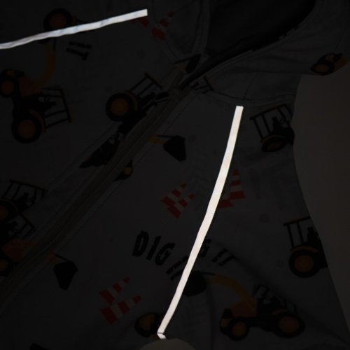 Nápaditý softshellový kojenecký overal New Baby. Overal je celopotištěný dětským vzorem. Overálek je vyroben v České republice z kvalitního materiálu softshell. Materiál je hladký, elestický, měkký a příjemný na dotek. Do určitého stupně je také voděodolný, nenasakuje vodu a je odolný vůči znečištění. Praktické zapínání na zip po celé délce velmi usnadní oblékání a přebalování. Zip je po celé délce podšitý látkou, a tím je zamezeno profukování větru na pokožku miminka. Kombinéza má praktickou kapuci, širší pružné lemy na rukách a nohavičkách a celá vnitřní strana je zateplená krátko střiženým polarem, který zvyšuje komfort nošení a zajišťuje teplo. Na rukávcích jsou našité reflexní paspulky. Softshellový overálek je vhodný jako sportovní oblečení, je odolný větru a zároveň prodyšný. Miminko se bude cítit velmi pohodlně a příjemně.<BR>Charakteristika softsellu:<BR>- tkanina se skládá ze 3 vrstev<BR>- vnější vrstva polyester<BR>- membrána<BR>- vnitřní vrstva, krátko střižený polar<BR>Složení:<BR>- polyester 94%, polyamid 6%<BR>- gramáž 345 g/m2<BR>- vodní sloupec 10 000 mm<BR>- prodyšnost 5000 g/m2/24h<BR>Upozornění:<BR>Během praní nepoužívat aviváž. Charakteristické vlastnosti softshellu by byly znehodnoceny.<BR>Vyrobeno v ČR. <BR>Snažíme se vám výběr správné velikosti co nejvíce usnadnit, proto při fotografiích naleznete velikostní tabulku.