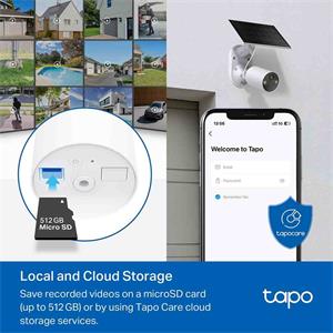 *Vyberte si místní úložiště microSD s kapacitou až 512 GB nebo zabezpečenou cloudovou službu Tapo Care pro větší klid.