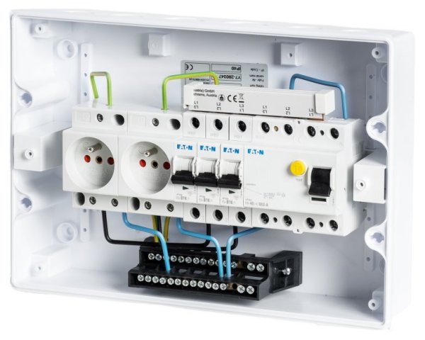 AC rozvaděč určený pro montáž na zeď, třída ochrany II, IP40/20, sloužící pro obsluhu třífázové fotovoltaické elektrárny (typicky střídače DEYE/Xtend Solarmi, Goodwe 4 až 10K-ET). Ideální tam, kde není možné využít vybrané okruhy pro zálohu ve stávajícím rozvaděči, ale lze využít pouze zásuvky a rezervní jistič pro vybrané spotřebiče.