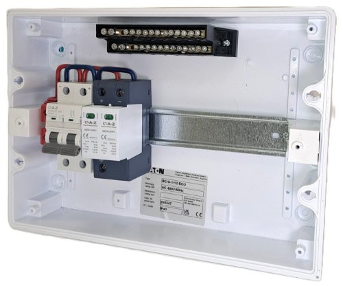 DC rozvaděč určený pro montáž na zeď, IP40/20 sloužící jako vstupní rozváděč od fotovoltaických panelů (ke střídači) při použití technologie pro ohřev vody, nebo FVE řetězců do 500 V.