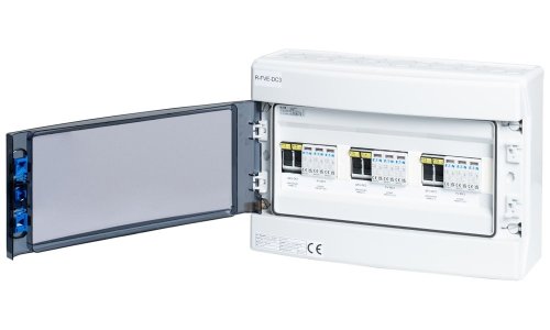 DC rozváděč určený pro montáž na zeď, IP65/20 sloužící jako vstupní rozváděč od fotovoltaických panelů (ke střídači) pro celé portfolio fotovoltaických elektráren.