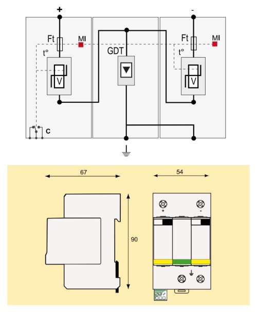 Svodiče přepětí řady DS50PVS/G jsou svodiče přepětí speciálně vyvinuté pro ochranu fotovoltaických zařízení proti přepětí a dodávají se v provedení pro napětí 500/800/1000 V DC. Výměnné moduly umožňují snadnou výměnu poškozeného dílu bez nutnosti demontáže připojených vodičů.