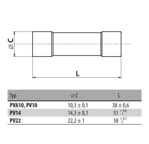 Válcová pojistka (výkonová pojistková vložka) pro pojistkový odpínač typu OPVP14.