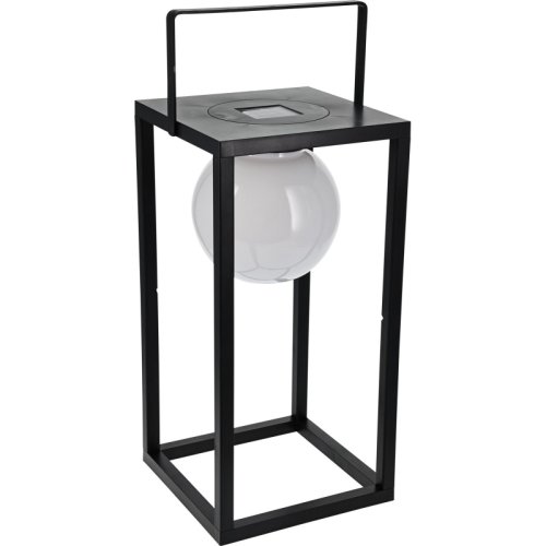 Elegantní solární svítidlo z odolného PP materiálu s černým rámem a držákem, vhodné pro zahrady, terasy nebo balkony.