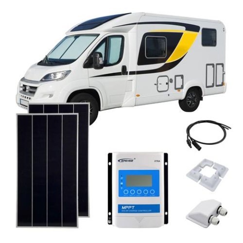 Po koupi setu získáte všechny potřebné díly pro instalaci panelu na střechu vozidla. V balení totiž najdete 2 monokrystalické solární panely s maximálním výkonem 180 W, solární regulátor, kabely, 2 držáky, lepidlo, průchodku a dutinky. Nemusíte shánět toto příslušenství a dodatečně dokupovat jednotlivé součástky. Součástí tohoto setu není baterie.