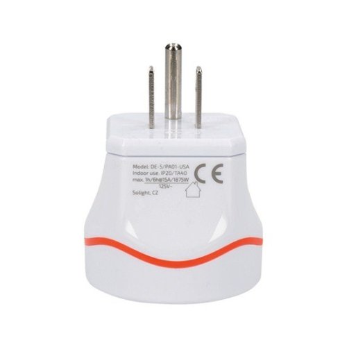 Cestovní adaptér s uzemněním SOLIGHT PA01-USA Pro obyvatele Evropy, navštěvující USA a země s US standardem Schuko uzemnění zásuvky, použitelné pro univerzální vidlice Vhodné i pro spotřebiče s neuzemněnou …