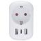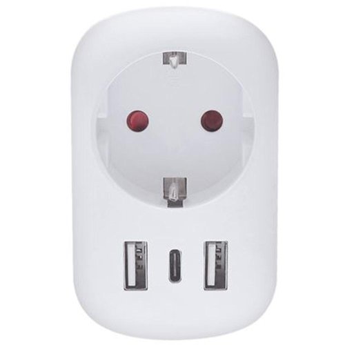 cestovní adaptér s uzemněním a vestavěnou USB nabíječkou výhodné spojení dvou zařízení v jednom pro obyvatele Evropy navštěvující USA a země s US standardem, zásuvky typu B Schuko uzemnění zásuvky, použitelné pro univerzální vidlice typu E/F vhodné i pro spotřebiče s neuzemněnou 2-kolíkovou vidlicí typu C zásuvka s dětskými pojistkami, 100 - 250V / max. 15A, max. 1800W / 120V, max. 3450W / 230V 2x USB-A + 1x USB-C, DC 5V - max. 2,4A, max. 12W adaptér nemění napětí ani jiné elektrické parametry barva: bílá