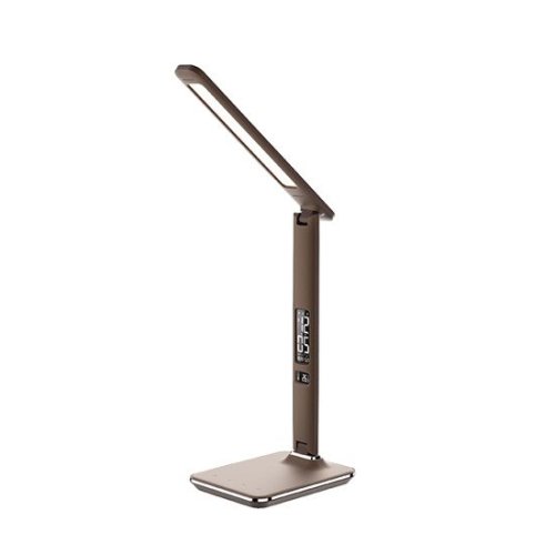 Solight WO45-H LED stolní lampička s displayem, 9W, volba teploty světla, kůže, hnědá