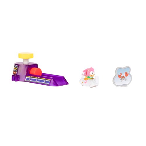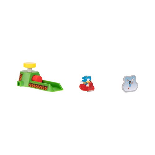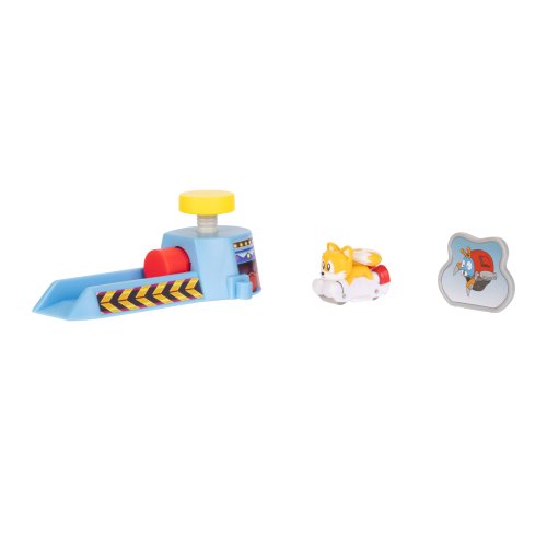 Sonic Go Go Racers Mini Launcher SET. Obsahuje 1 vystřelovací zařízení, 1 jezdící figurku, 1 cíl. Jednotlivá vystřelovací zařízení lze vzájemně propojit. 3 varianty - Sonic, Amy, Tails.