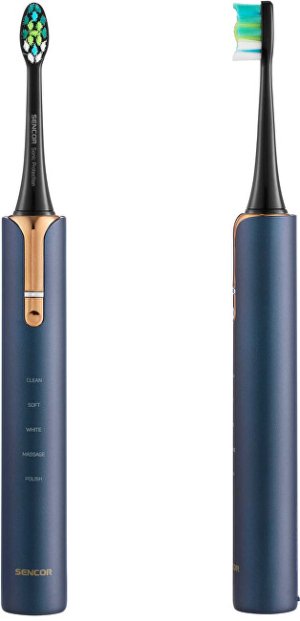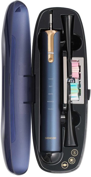 Sonický zubní kartáček SOC 4110BL je navržen pro efektivní, šetrné a komfortní každodenní čištění zubů. Nabízí 5 přednastavených programů pro čištění i regeneraci a dosahuje až 40 000 stěrů za minutu, což zaručuje výrazně vyšší účinnost při odstraňování plaku ve srovnání s běžným čištěním. Díky speciálně nastavenému kmitání zároveň pečuje o zdraví vašich dásní. Chytrý časovač s technologií Quadpacer rozděluje čištění na čtyři rovnoměrné časové úseky pro optimální výsledky. Kartáček je vybaven LED indikátorem stavu baterie a ergonomicky tvarovanou rukojetí pro pohodlné držení. Spotřeba energie je mimořádně nízká a voděodolné provedení s krytím IPX7 umožňuje použití i ve vlhkém prostředí. Baterie vydrží až 45 dní na jedno nabití při běžném používání. Výměnné hlavice zajistí dlouhodobou hygienu a díky celosvětové kompatibilitě napětí 100–240 V si kartáček snadno dobijete kdekoli na světě.