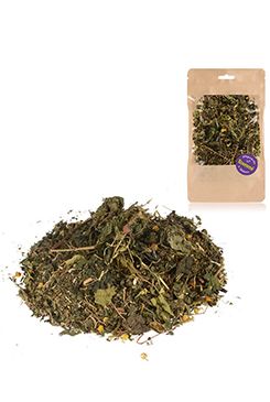 Máta – 20 %, Meduňka – 20 %, Heřmánek – 5 %, Anýz – 5 %, Borůvka – 25 %, Bazalka – 5 %, Kopřiva (list) – 20 %