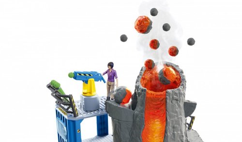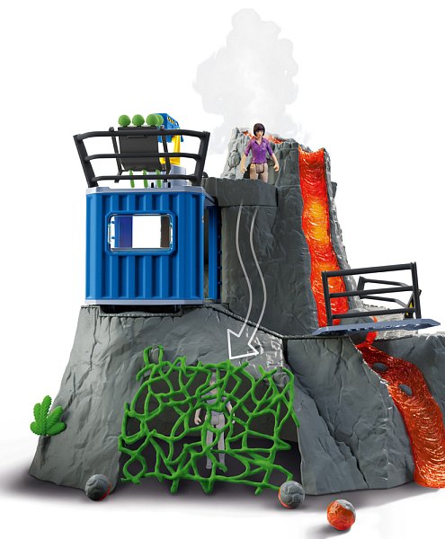 Výzkumnice Yuki z velké sopečné expedice ze Schleich® Dinosaurs sbírá do svého výzkumného kontejneru všechno, co se týká dinosaurů. Najednou slyší rachot: celá hora vibruje a stoupá dým. Reaguje bleskově a skáče na svou únikovou klouzačku, která ji doveze do tajné jeskyně pod sopkou. Stihla to jen taktak, protože sopka právě vybuchuje. Díky této funkci mohou být z kráteru sopky katapultovány kameny. Sopka navíc vibruje a stoupá z ní dým. Funkce světla LED, která je integrovaná v proudu lávy i v některých kamenech, se postará o napínavou atmosféru při hraní. Na akčnosti dodává celé situaci dráha s překážkami na zadní straně sopky. Zlatým hřebem velké sopečné expedice jsou dva dinosauři, kteří jsou v sadě obsaženi s exkluzivní speciální malbou. Figurky Schleich jsou mimořádně detailní, láskyplně malované a umožňují dětem hrát si a zároveň se učit. Sada obsahuje: 1x výzkumnice dinosaurů Yuki, 1x gigantosaurus, 1x ankylosaurus, 1x sopka, 1x kontejner, 1x zábradlí ke kontejneru, 1x zábradlí k mostu, 1x most, 1x vrchní část zábradlí, 1x boční část zábradlí, 1x držák na munici, 1x kamenná kulička, 2x kámen velký, 3x kámen střední, 4x kámen malý, 2x křišťál velký, 2x křišťál malý, 1x liána, 2x rostlina velká, 3x rostlina malá, 1x stalaktity. Baterie 3x AA nejsou součástí balení. Nevhodné pro děti do 3 let. Doporučený věk: 4-10