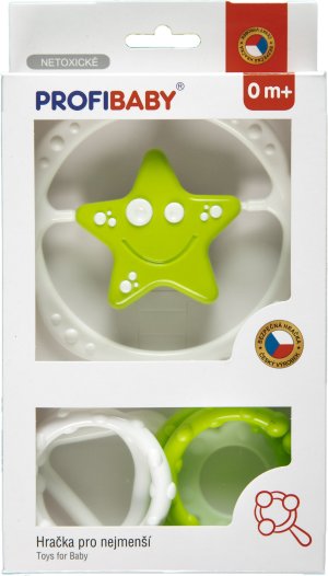 Souprava chrastítko řetěz + chrastítko hvězdička/kytička barevná. Stimuluje smysly sluchu, zraku i hmatu dítěte a zároveň se cvičí uchopovací reflex. Chrastítka splňují náročné hygienické normy, jsou bez ostrých hran a bez uvolnitelných malých částí. 2 varianty - hvězda, kytička v různých barvách - červená, mentolová, modrá, růžová, zelená, šedá, bílá.