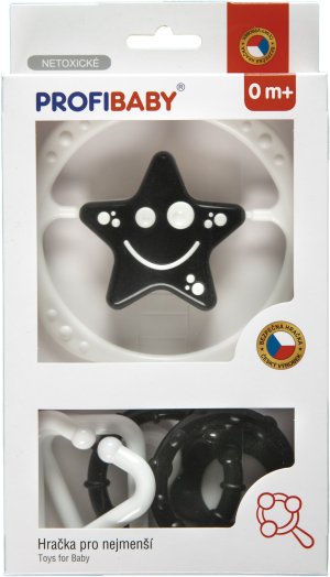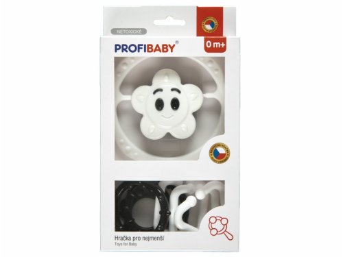 Souprava chrastítko řetěz + chrastítko hvězdička/kytička černobílá. Stimuluje smysly sluchu, zraku i hmatu dítěte a zároveň se cvičí uchopovací reflex. Chrastítka splňují náročné hygienické normy, jsou bez ostrých hran a bez uvolnitelných malých částí. 2 varianty - hvězda, kytička.