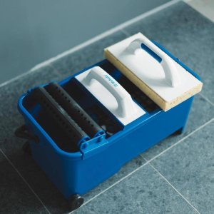 sada obsahuje - kbelík obkladačský 20 l, mřížka, sada koleček (KU1524), dvojité válečky (KU1525), hladítko s mořskou houbou řezanou (KU0387), hladítko spárovací modré (KU0325) kbelík má otvory pro čepy …