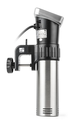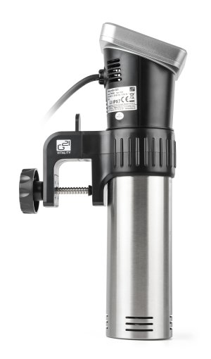 Ponorný pomalý vařič G21 Trofeo s příkonem 1 200 W je skutečným mistrem v sous-vide vaření ve vakuu. Je připraven pro každodenní bezpečné použití a vyladěný do nejmenších detailů. Elegantní tělo se skládá ze dvou částí – ponorná část s vnitřní varnou spirálou a vrchní část s elektronikou a kulatým dotykovým displejem. Pro bezpečné zavěšení sous-vide vařiče G21 Trofeo na okraj varné nádoby jsme ponorný vařič vybavili posuvným upevňovacím klipsem.