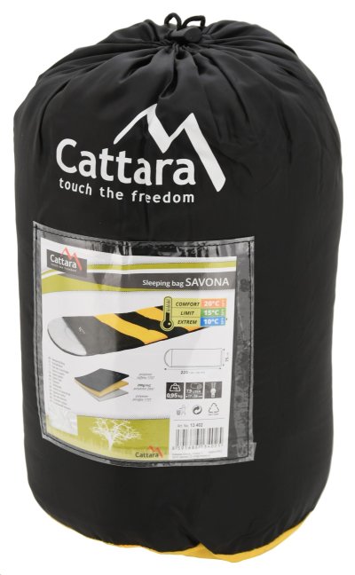 Cattara Savona 10°C představuje dekový spací pytel s univerzálním využitím a vysokým komfortem díky svým rozměrům 230 x 75 cm. Vyniká také svými malými rozměry v balení 17 x 35 cm, díky čemuž je velmi snadno přenosný. Hodí se tak pro stanování, vodácké výpravy, výlety do přírody nebo treking a skvěle náhradí i přikrývku v karavanech, kempech či na chalupě. Dokonale kopíruje tělo a má tak nejlepší tepelně izolační vlastnosti a je vybaven ztahovací kapucí chránící hlavu.