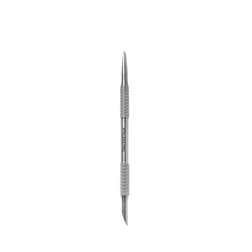 Oboustranná špachtle na manikúru pro zatlačení kůžičky a čištění nehtu. Speciální drážky na povrchu rukojeti zajišťují pohodlné uchopení prsty a zabraňují sklouznutí nástroje při práci.