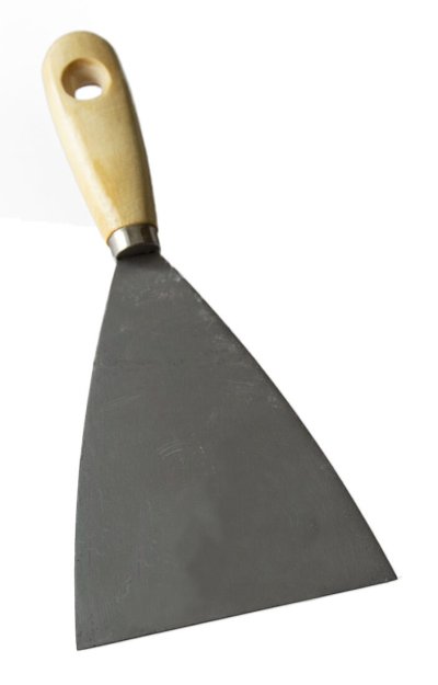 Nerezová špachtle s dřevěnou rukojetí se využívá k nanášení a roztírání stavební sádry nebo jiných tmelících hmot či k odstraňování staré malby a nátěrů.