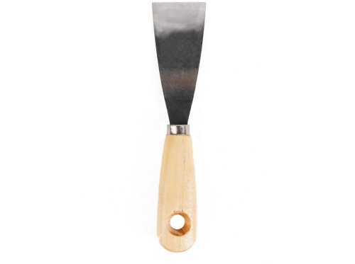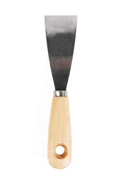 Nerezová špachtle s dřevěnou rukojetí se využívá k nanášení a roztírání stavební sádry nebo jiných tmelících hmot či k odstraňování staré malby a nátěrů.