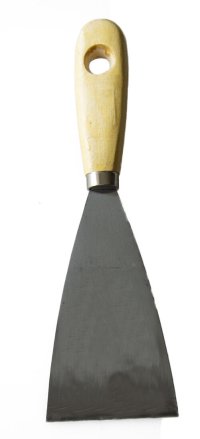 Nerezová špachtle s dřevěnou rukojetí se využívá k nanášení a roztírání stavební sádry nebo jiných tmelících hmot či k odstraňování staré malby a nátěrů.