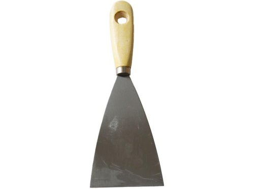 Nerezová špachtle s dřevěnou rukojetí se využívá k nanášení a roztírání stavební sádry nebo jiných tmelících hmot či k odstraňování staré malby a nátěrů.