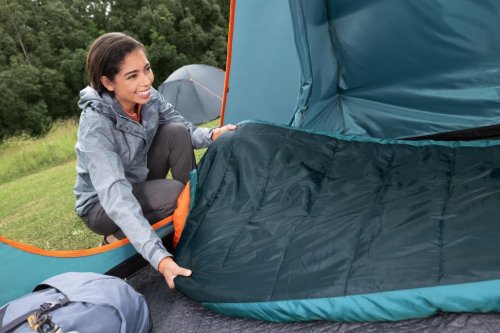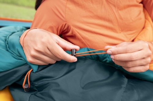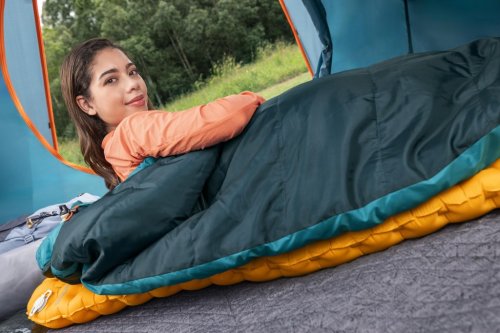 Spací pytel Bestway Ridgepro mumie je určený pro outdoorové nadšence a kempování v chladnějších podmínkách. Jeho rozměry činí 230 cm na délku, 74 cm v nejširší části u hlavy a 48 cm v oblasti nohou, což poskytuje dostatek prostoru pro pohodlný spánek. Tento mumie stylový spací pytel je navržen tak, aby efektivně izoloval teplo a minimalizoval únik tepla díky svému tvaru, který obepíná tělo a má zúžený konec u nohou. Barva spacáku je tmavě zelená s akcenty v odstínu petrolejové a vnitřek je kontrastně oranžový, což zároveň usnadňuje orientaci uvnitř.