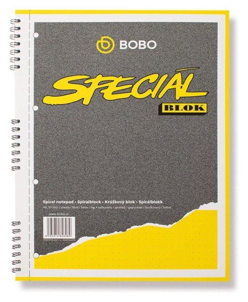 Praktický tečkovaný blok A4 by neměl chybět nikomu, kdo si potřebuje pravidelně dělat zápisky ze školy či z porady. <br> <br>Díky svým vlastnostem, jako je perforace a děrování, se tento blok stane všestranným pomocníkem pro všechny, kteří potřebují uchovat svoje zápisky. <br> <br>Tečkovaná lineatura je navíc velmi výhodná, protože z teček můžete jednoduše pár tahy vytvořit čtverce, a rychle tak sepsat důležitý to do list nebo si s plochou jinak kreativně vyhrát. <br> <br>Poznámkový blok Speciál <br>• Formát: A4 <br>• Počet listů: 50 <br>• Lineatura: Tečkovaná <br>• Gramáž: 70 g <br>• Vazba: Dvojitá kroužková Twin Wire <br>• Děrování pro zakládání do pořadačů <br>• Perforace stránek pro snadné odtrhávání