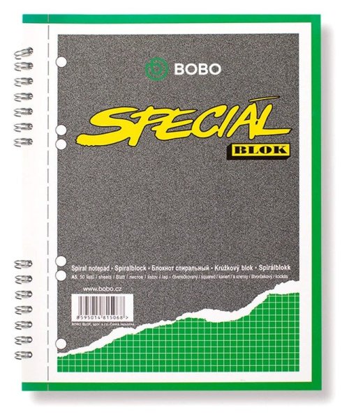 Čtverečky a velikost A5 je ideální kombinace, díky které budou vaše zápisky přehledné a navíc si je můžete vzít kamkoliv s sebou. br brPoznámkové bloky z edice Speciál jsou našimi nejprodávanějšími výrobky. Díky svým vlastnostem, jako je perforace a děrování, se tento blok stane všestranným pomocníkem pro všechny, kteří potřebují uchovat svoje zápisky. br brTento blok Speciál je vhodný pro školní zápisky, pracovní úkoly, domácí to do listy, recepty nebo zápisky z dovolené. Je malý, čtverečkovaný a hlavně praktický. br brPoznámkový blok Speciál br• Formát: A5 br• Počet listů: 50 br• Lineatura: Čtverečkovaná br• Gramáž: 70 g br• Vazba: Dvojitá kroužková Twin Wire br• Děrování pro zakládání do pořadačů br• Perforace stránek pro snadné odtrhávání br brKroužková vazba Twin Wire umožňuje snadné otáčení listů až o 360° bez posunutí stránek. Zápisník zůstane otevřený na zvolené stránce a (na rozdíl od šitých vazeb) se nezavře.