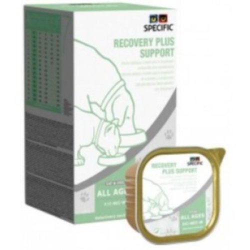 SPECIFICTM Intensive Support je kompletní dietní krmivo pro psy a kočky určené pro zotavení organismu pomocí výživy, při rekonvalescenci a v případě jaterní lipidózy koček. Krmivo s vysokým obsahem energie obsahuje zvýšené koncentrace nezbytných živin a vysoce stravitelných složek. Vysoký obsah omega-3 mastných kyselin z rybího oleje a ß-1,3/1,6-glukanů podporuje proces zotavení a posiluje imunitní systém. Složení: kuře, vepřové maso, ryby, vaječný prášek, rybí olej, bramborový škrob, bramborová bílkovina, minerály, vitamíny a stopové prvky, slunečnicový olej, psyllium slupka, dextróza, xylóza, kvasinky (zdroj β-1,3 / 1,6-glukanů 0,03%). Vysoce stravitelné složky: Kuřecí, vepřové a rybí maso, vaječný prášek, bramborový škrob, rybí olej, bramborový protein, slunečnicový olej, dextróza, xylóza. Neobsahuje umělá barviva, ani látky zvýrazňující chuť. Doplňkové látky (na 1 kg): Nutriční doplňkové látky: měď 2,6 mg (chelát měďnatého glycinu hydrátu), železo 14,0 mg (chelát železa glycinhydrátu), 38,0 mg zinek (chelát zinečnatého glycinhydrátu), 3,6 mg mangan (chelát manganu hydrátu glycinu), jod 0,52 mg (jodičnan vápenatý bezvodý), taurin 1,5 g, L-karnitin 102 mg. Analytické složky: Metabolizovatelná energie 540 kJ / 100 g (129 kcal /100 g) pro psy a 532 kJ / 100 g (127 kcal /100 g) pro kočky, hrubý protein 12,0 %, hrubé oleje a tuky 7,5 %, hrubá vláknina 0,1 %, hrubý popel 2,2 %, vlhkost 74,2 %, vápník 0,34 %, fosfor 0,29 %, sodík 0,19 %, draslík 0,25 %, omega-3 mastné kyseliny 0,80 %, omega-6 mastné kyseliny 1,12 %. Dávkování: Dietu zavádějte postupně, dokud v rozmezí 2 až 3 dnů nedosáhnete cílové dávky. V případě potřeby upravte množství podle zdravotního stavu psa nebo kočky. Denní dávku se doporučuje rozdělit na několik porcí podávaných v průběhu dne. Podávejte ohřáté na pokojovou nebo tělesnou teplotu. V případě krmení sondou obsah dobře rozmíchejte a přidejte 1 nebo 2 díly vody. Psi i kočky musí mít vždy přístup k čerstvé pitné vodě.