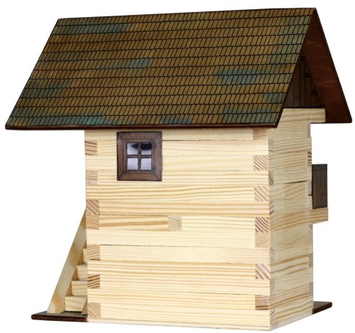 Dřevěná slepovací stavebnice Walachia - Špýchar. Slepovací stavebnice Walachia jsou dřevěné modely domečků a staveb z Valašského kraje v měřítku 1:32. Základem jsou dřevěné hranolky 9x9 mm a k tomu jsou v sadě vždy všechny papírové doplňky - okna, dveře, střešní části atd. Pro lepení se používá lepidlo Herkules, není však součástí stavebnice. Přiložený je montážní návod a malé kapitoly z historie lidové architektury. Níže je označení obtížnosti číslem 1 - 5, přičemž 1 je nejlehčí. Rozměry: 18 x 14 x 20 cm Počet dílů: 126 Obtížnost: 3