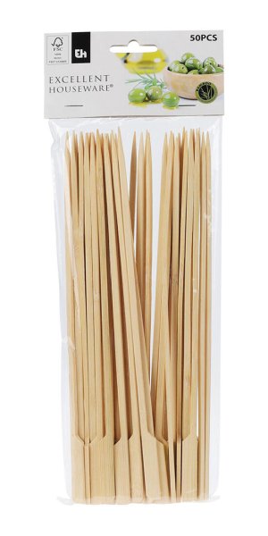 Špejle bambus 25 cm, grilovací s úchytem (50 ks). délka: 25 cm balení: 50 ks s úchytem Kvalitní bambusové špejle vhodné pro použití do domácnosti i gastrovýroby, na grilování.