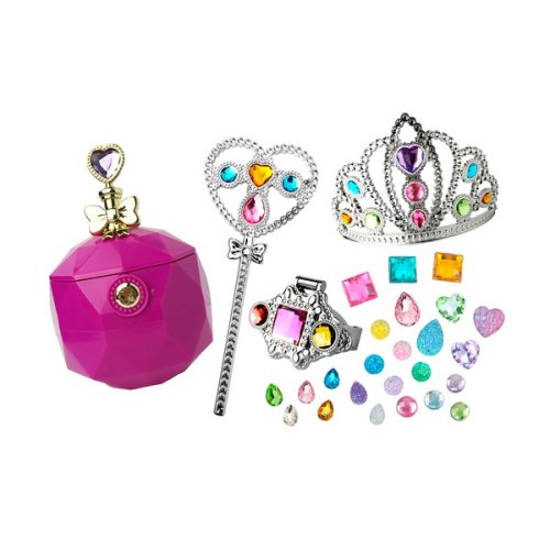 Šperky pro princezny s kouzelnou šperkovnicí – vytvořte si vlastní šperky pomocí kouzelných kamenů. Pomocí kouzelného klíče ukrytého na vrchu šperkovnice odemkněte šperkovnice, nalijte do ní vodu a vhoďte kameny a počkejte až se Vám objeví drahé kameny, které poté vložce do čelenky. Šperkovnice i tajná komora v náramku jsou uzamykatelné. Balení obsahuje – 1 Kouzelná šperkovnice (s klíčem), 12 kamenů, které se promění ve 24 drahokamů 1 Diadém,1 Kouzelná hůlka a 1 náramek (který se zamyká).