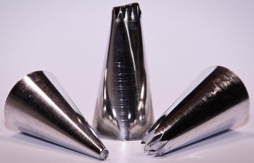 Balení obsahuje 3 ks zdobicích špiček. Ideální pomocník pro zdobení dortů a dezertů. Špičky se také hodí k pečení a plnění zákusků a cukroví. Vyrobeno z pocínovaného plechu. Připraveno k použití s bavlněným cukrářským sáčkem. Sáček není součástí balení.