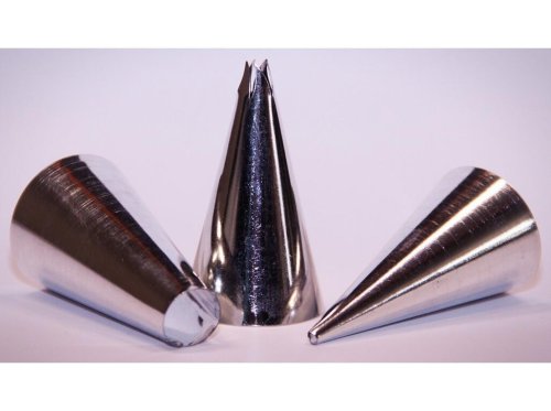 Balení obsahuje 3 ks zdobicích špiček. Ideální pomocník pro zdobení dortů a dezertů. Špičky se také hodí k pečení a plnění zákusků a cukroví. Vyrobeno z pocínovaného plechu. Připraveno k použití s bavlněným cukrářským sáčkem. Sáček není součástí balení.