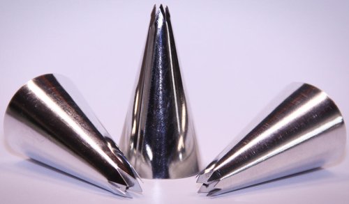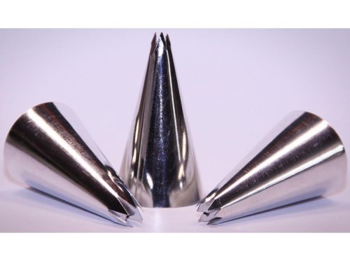 Balení obsahuje 3 ks zdobicích špiček. Ideální pomocník pro zdobení dortů a dezertů. Špičky se také hodí k pečení a plnění zákusků a cukroví. Vyrobeno z pocínovaného plechu. Připraveno k použití s bavlněným cukrářským sáčkem. Sáček není součástí balení.