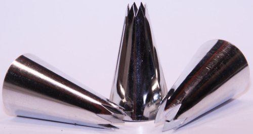 Balení obsahuje 3 ks zdobicích špiček. Ideální pomocník pro zdobení dortů a dezertů. Špičky se také hodí k pečení a plnění zákusků a cukroví. Vyrobeno z pocínovaného plechu. Připraveno k použití s bavlněným cukrářským sáčkem. Sáček není součástí balení.
