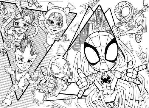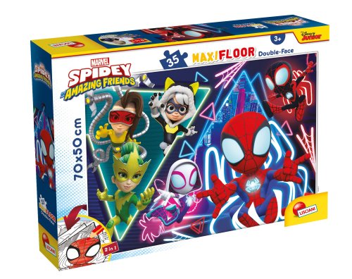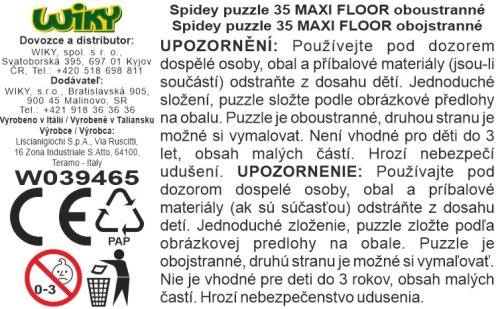 Spider-man Spidey Puzzle MAXI-FLOOR oboustranné. Rozměry složeného obrázku 70x50 cm. Balení obsahuje 35 dílků. Jedna strana je potisknutá barevně, druhá je určena k vymalování.